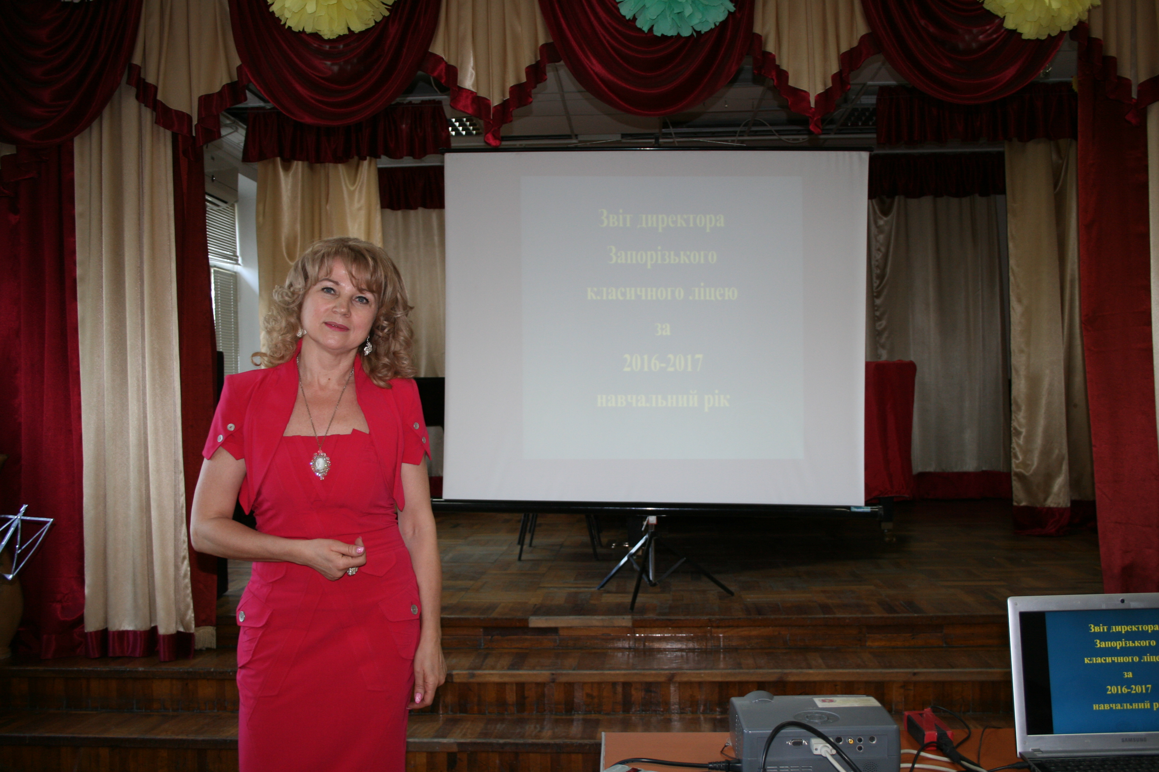 Здравствуй, родной Лицей!      Здравствуйте, дорогие учителя!      Здравствуйте, юные лицеисты! Я очень отчетливо помню первый для меня День лицея. Чудесный праздник, и прекрасный концерт. Сцена была огромной, а зал, казалось, вмещал тысячи зрителей! Тогда, я впервые услышала Гимн Лицея, и сказала родителям, что обязательно буду исполнять его, когда подрасту. Так и случилось, и слова нашего Гимна навсегда останутся в моей памяти.  Вот уже год Далі…